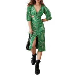 - Allover floral print, cutouts at side waist