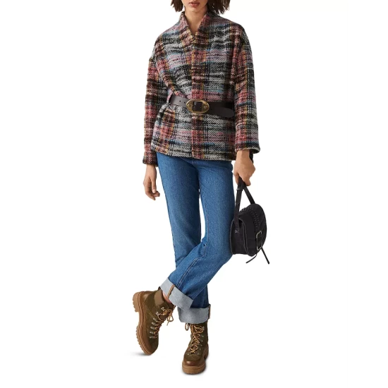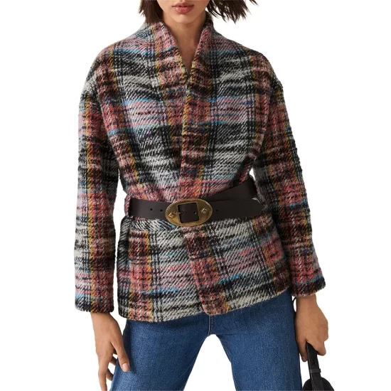 - 58% virgin wool/18% polyester/9% alpaca/7% acrylic/4% wool/3% polyamide/1% other fibers; belt: 100% leather