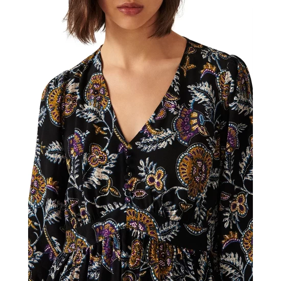 - Shirring at shoulders and waist