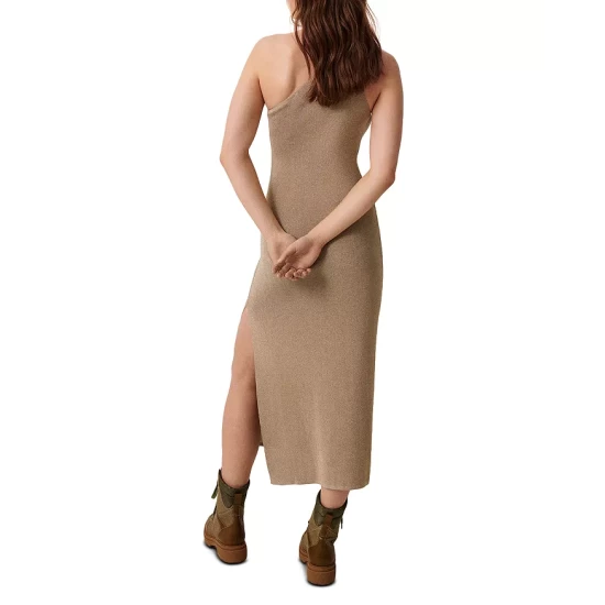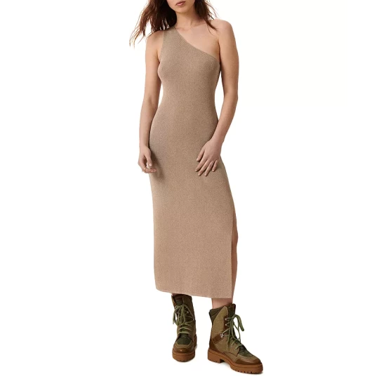 - Sleeveless, one-shoulder silhouette